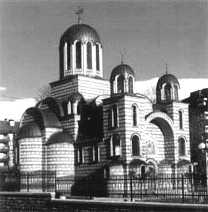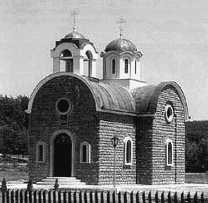 | | | Новая церковь святого Иоанна. После прихода американских сил КФОР взорвана 25 июля 1999 года албанцами. |