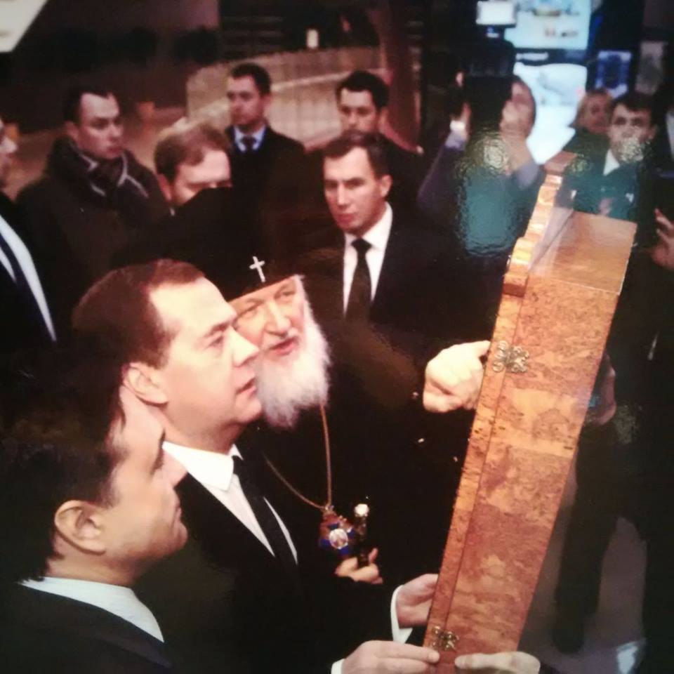 На шестом фото: Патриарх Кирилл с Премьером Д.Медведевым и губернатором Московской области Воробьевым «прославили новых святых», одарив музейно-выставочный комплекс «Новый Иерусалим» иконой с «ликами» самозванцев! Самозванцы на иконе «Император в изгнании Кирилл I» «Государь Владимир Кириллович» «Государыня В.К. Мария Владимировна»