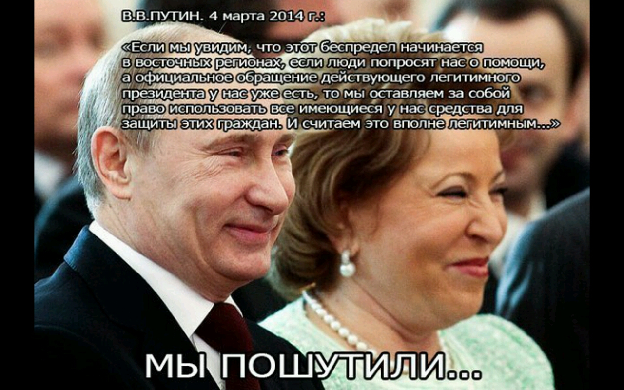 По-хорошему прошу: прекрати! Причем тут вообще руководство Крыма, если в решении СФ ясно сказано, что речь идет о всей Украине? А.Р. Путин обещал помощь именно ВСЕЙ Украине! А не только Крыму. А в определённый момент резко сдал позиции, по команде!