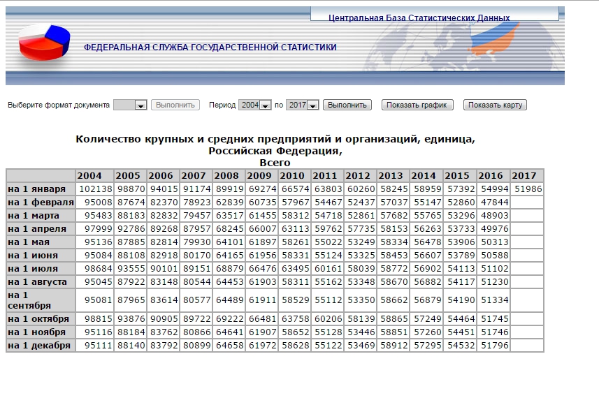 неумным людям не хватило умишка подделать одну деталь. А именно в скрине написано "Количество крупных и средних предприятий и организаций ... " С 01.01.2004 по 01.01.2017
