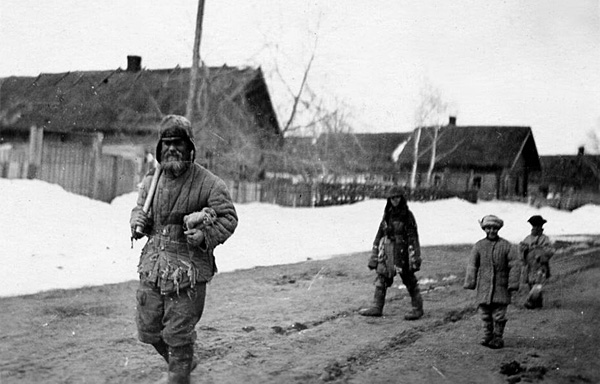 До революции Россия была в основном аграрной страной. Зажиточных крестьян ("середняков" и "кулаков") большевики, ограбив, отправляли в лагеря. Кто остался в деревне, видно на фото.