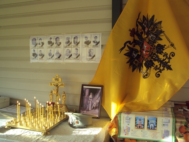 После Литургии состоялся Крестный ход вокруг храма, в котором приняли активное участие вместе с прихожанами и пластуны. Вложение: Вложение: Крестный ход вокруг собора. Откушав сытной и вкусной трапезы, казаки – монархисты отправились к себе в храм святых Царственных мучеников в селе Клугино – Башкировке. В память о шефе 11 – го уланского Чугуевского полка Императрице Марии Феодоровне, военно – исторической реконструкцией которого мы занимаемся, всем воинам и вождям за Веру, Царя и Отечество убиенным, в плену и от ран скончавшимся, была отслужена лития мирским чином. Вложение: Приспущен Императорский штандарт. |