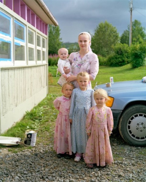 Вложение: Ирина, Ульяна, Лукия, Феонилла и Анастасия – старообрядческая семья из Николаевска На карте, однако, деревни нет. Но дорога, только в нее и ведущая по еловым лесам, нарисована - не заблудишься. Я был в деревеньке два раза - зимой и летом. Среди домов - почти игрушечная церковка с луковицей, прямоугольник школы, "тарелка" антенны у почты. Дома глядятся иначе, чем в старых русских деревнях, обиты тесом, покрашены - американская технология. Но что-то наше родное, российское есть в деревне. Валяется бочка рядом с дорогой, перекошен наполовину сломанный забор. И это все не от бедности. Деревня в этих лесах, как крепкий здоровый орешек, - у каждого дома автомобиль, а то и два. Российская привычка к простору, небрежность и беззаботность - "сойдет и так". Характер! Куда его денешь. Характер, привычки, уклад бытия человек сохраняет и носит с собой, как черепаха панцирь. Тут же случай особый - староверческая община! Человек из Москвы - Здравствуйте! - Здравствуйте, здравствуйте. Откеля будете?.. Из Москвы... Вот оно как... - Кума Анисья! - обращается мой спутник к женщине в ярко вышитом сарафане, ведущей двух девочек в длинных, не фабричного шитья платьицах. - Человек-то издалека, из Москвы... У Анисьи удивления нет. - Штой-то к нам народ зачастил, - отвечает она, с любопытством разглядывая гостя. Улавливаю во взгляде хорошо знакомую по сибирским староверческим селам настороженность к пришлому... Конец субботнего дня. Деревня курится банями. Звонит "к вечерне" церковный колокол. Мужчины встречные - бородаты, ребятишки - кто в подпоясанных расшитых рубашках, кто в кафтанах до пяток. На мотоцикле сидящего в таком кафтане видеть особенно непривычно. Рыжебородый дьякон проехал к церкви в автомобиле. Старушка вся в черном, опираясь на палку, идет. Речь кругом русская, хотя так же, как и одежда, отличается от того, что слышишь сегодня в нашей деревне. Вложение: Первый работник - поп Первым, с кем я тут познакомился, был поп. Он в общине лицо не просто духовное, он лидер во всех житейских делах - первый работник, блюститель нравственности, первый советчик во всем. Руку мне подал среднего роста человек в шляпе, из-под которой на рясу ниспадали рыжеватые волосы. - Фефелов Кондратий Сазонтьевич. А это - матушка Ирина Карповна. И сын - одиннадцатое по счету дите. Наверное, уже последышек? - батюшка весело подмигнул матушке. Я, признаться, не сразу поверил, что у этих двух еще моложавых людей был такой выводок детворы. В первую встречу зимой мы снимались около церкви, сходили в школу, отведали матушкиных блинов... Летом я увидел попа сидящим за рычагами бульдозера. Так же ловко он водит грузовичок. Я видел его среди плотников с топором, видел стоящим в рубке рыболовного судна - рыбак, штурман и капитан. Слушал его заутреню. Он был то в рыжем подранном свитере, то в рясе. Никакой сановитости, прост, приветлив, умен. Прошлись мы с Кондратием Сазонтьевичем по деревне, сходили на холм, откуда Николаевск выглядит горсткой домов, кинутых в синь еловых лесов. Никаких следов человека, только чистая змейка дороги. - В 1967 году трое наших приехали сюда оглядеться. И это место облюбовали - уединение для нас подходящее, вода родниковая самотеком течет. Купили у штата Аляски за четырнадцать тысяч квадратную милю земли. И через год застучали тут топоры... Кондратий Сазонтьевич на русской земле стоял ли