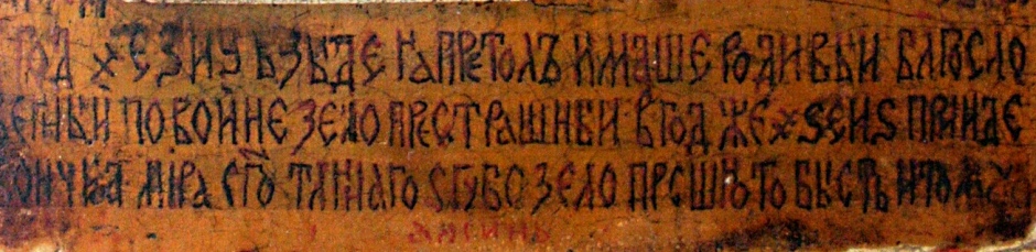 Точно такая же судьба постигла и предначертанную дату конца «зело грешного мира», обозначенную на иконе как ҂SEИS и читаемую в действительности как 6000/5/8/6, а не 6019. В общем, получается семиотический каламбур. Выходит, что многочисленные источники, смакующие истории о великих прорицателях прошлого, передирая друг у друга вброшенную кем-то фальшивку, лишь вводят читателя в заблуждение, не вникая в суть освещаемого вопроса. Если же внимательно приглядеться к надписям на иконе, можно заметить, что изначально они были сделаны красной краской, а в дальнейшем старательно обведены черным, причем обводивший их так спешил, что забыл про последнее слово «аминь», которое так и осталось красным. Грешным делом можно даже было подумать, что делал это реставратор, если бы внимательный взгляд не улавливал в месте расположения дат некоторую затертость фона. Особенно это бросается в глаза в случае с датой ҂ЕЗИУ. Тут возникает ощущение, что ее умышленно подтирали, причем так усиленно, что в «пылу страсти» залезли и на соседнее слово. Утратив конкретность своих очертаний, цифры с гораздо большей легкостью поддавались редактированию и обводились схожими по написанию символами. Только этим и объясняется каламбур при попытках прочтения указанных на иконе цифр. Вероятно, сработавший топорно «реставратор» был не только не искушен в вопросах письменности допетровских времен, но и вообще не понимал значения старорусских букв. И можно было бы забыть о канувших в лету датах, если бы только горе-мастер не оставил одну существенную зацепку.