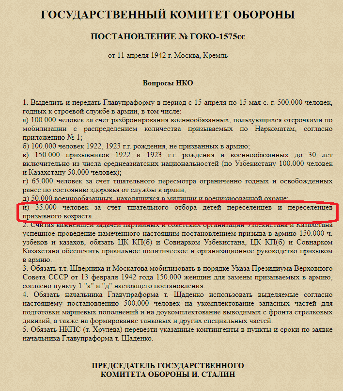 Массовый призыв спецпереселенцев прекратился в конце 1942 года. Было призвано более 60 тыс. чел. В целом мобилизация прошла организованно и спокойно. Фиксировались единичные негативные проявления со стороны спецпереселенцев. Наиболее типичными фразами в отчетах были следующие: «Фактов прямого отказа членов семей трудпереселенцев от призыва в Красную Армию не установлено»; «Подавляющее большинство членов семей трудпоселенцев явились на призывные пункты с большим желанием, что подтверждается значительным количеством заявлений, поданных в райвоенкоматы с просьбой о зачислении в части Красной Армии». Такая толерантность вполне объяснима, так как призыв в период войны для полного восстановления трудпоселенцев во всех правах и освобождения от режима спецпоселения. После 1942 года сохранился частичный призыв в армию детей «бывших кулаков», существовавший с 1941 года.