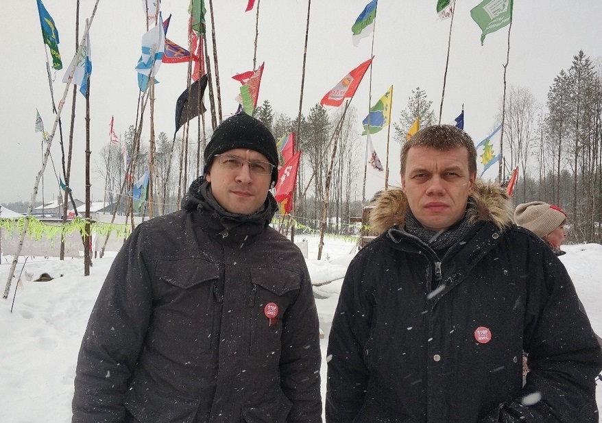 Возвращаемся из Шиеса с Евгением Ступиным ( Евгений ). Вчера весь день пробыли в Шиесе, сегодня утром встречались с депутатами пос. Урдома. В воскресенье вечером встретились с активистами в Коми рескоме партии, который активнейше поддерживает протестующих.