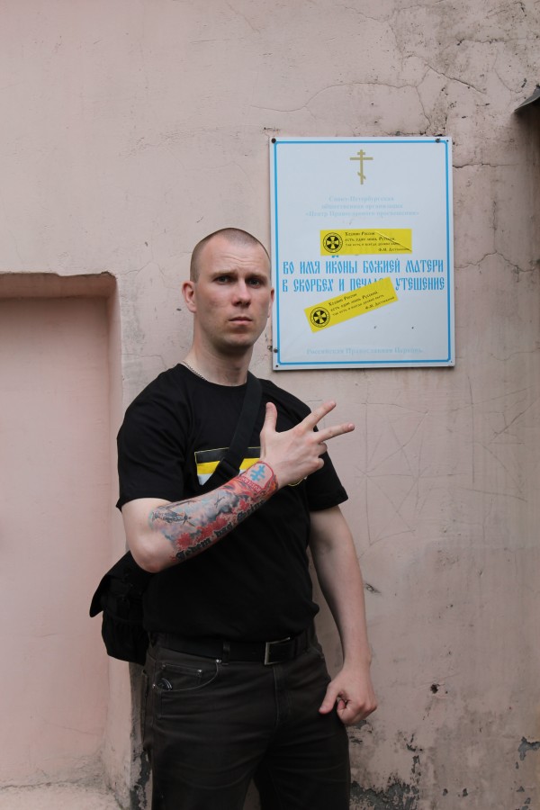 Евгений Андрущенко (ссылка на его страницу В Контакте http://vk.com/id412651 ) и соратник Санкт-Петербургского отделения Всероссийского православного патриотического движения "Черная Сотня" (Штильмарк А.Р.) Антон Раевский.