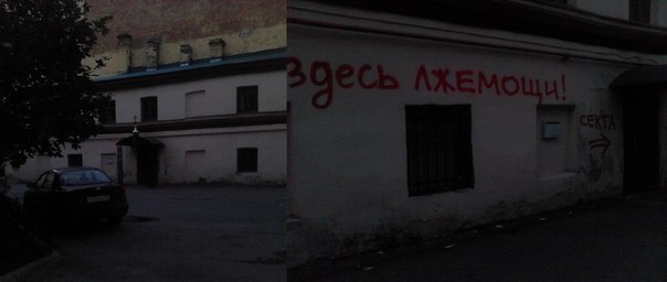 13 октября 2013 года,на нескольких объектах принадлежащих питерской секты под названием РПАЦ появились надписи антисектантского содержания.