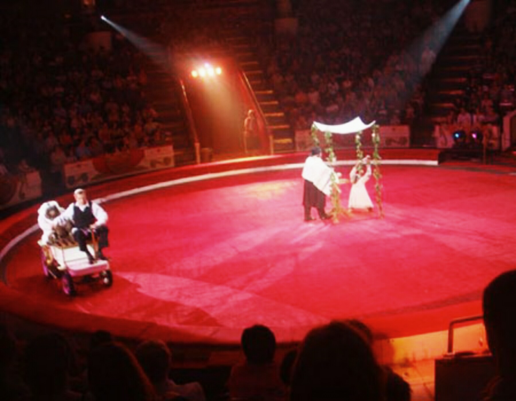 Московский цирк «На Цветном бульваре», где долгие годы «царствовал» Марк Местечкин, а сегодня –Максим Никулин, сын Юрия Никулина, несколько лет назад включил в свою программу номер, который называется «Еврейская свадьба». Все, как на свадьбе: жених с невестой, гости, хупа, лапсердаки, пейсы, цицес и другие еврейские атрибуты, раввин, только все участники номера – обезьяны. Обезьяна-раввин, со смешными ужимками бегает вокруг новобрачных, вызывая хохот зрителей. Полный сбор . Деньги в кассу цирка текут рекой. Правда, присутствующие в зале евреи демонстративно встают и уходят из зала. Написали в дирекцию цирка письмо с просьбой снять номер, оскорбляющий национальное достоинство.