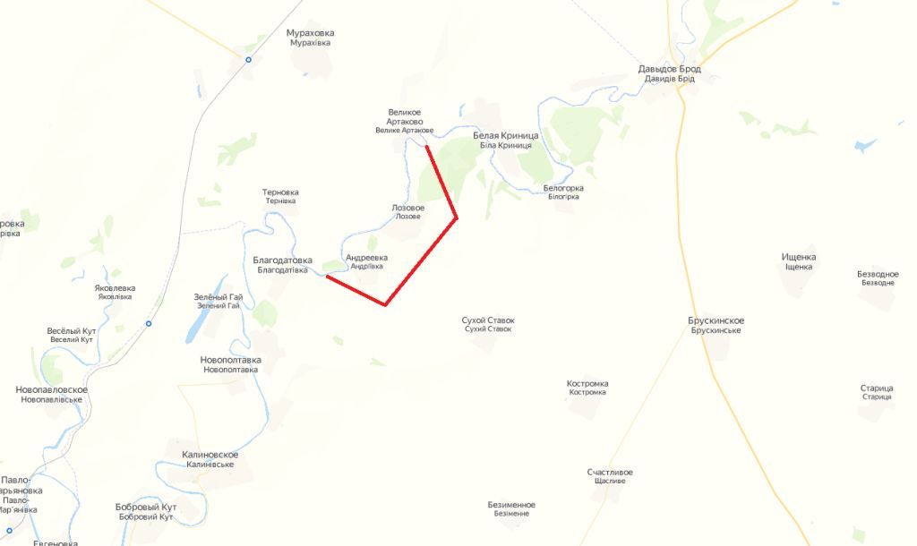 Противник вчера отброшен практически на исходные позиции с большими потерями от Сухого Ставка и Благодатовки, однако по-прежнему прочно удерживает Андреевку и Лозовое.