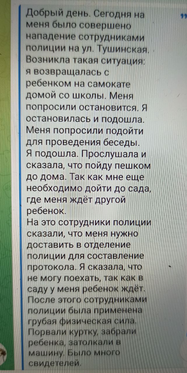 В свете мамы на самокате вспоминается Муженская, которую во время Ковидобесия доблестные стражи порядка заломали и волокли прямо по асфальту из-за отсутствия маски в московском МФЦ, таскали за волосы и т.д.