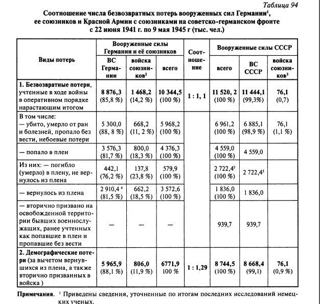 Кривошеев утверждает в своей работе "ВОВ без грифа секретности. Книга потерь." Москва, 2010, стр.40: