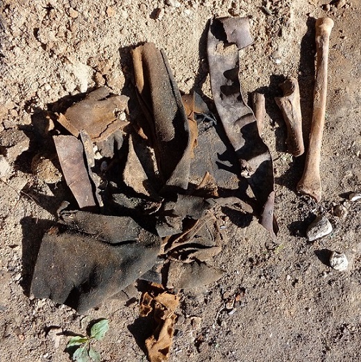 Фрагменты костей и мундира, обнаруженные Гицевичем при зондаже грунта: