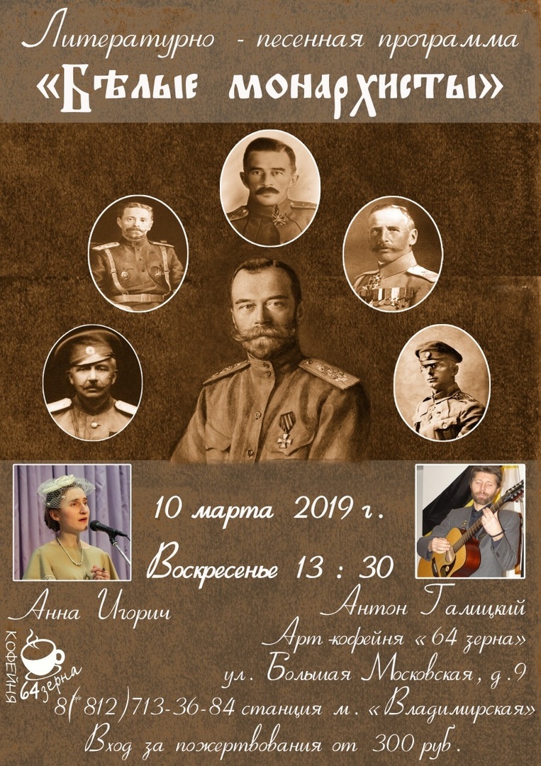 Если не считать артистов, то у меня только насчёт Краснова сомнения, остальные все монархисты. Хотя вопрос, верно ли считать монархистом монарха? Это как Маркс, который не был марксистом.