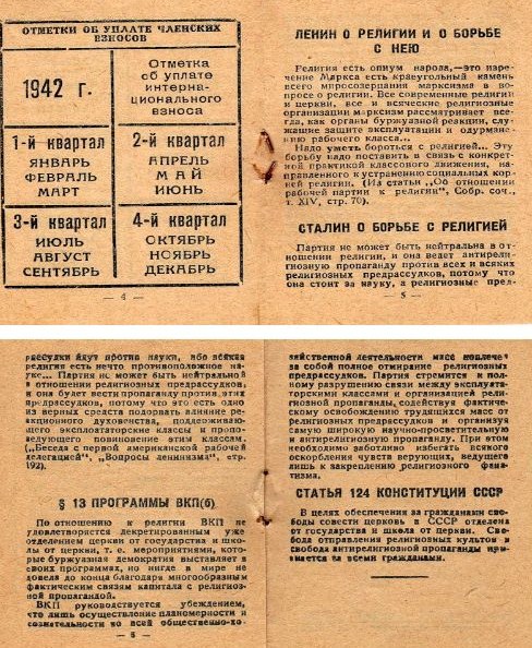 Действительно, Сталин настолько православный правитель, что его изречения на эту тему печатались даже на членском билете Союза Воинствующих Безбожников, главной православной организации СССР.