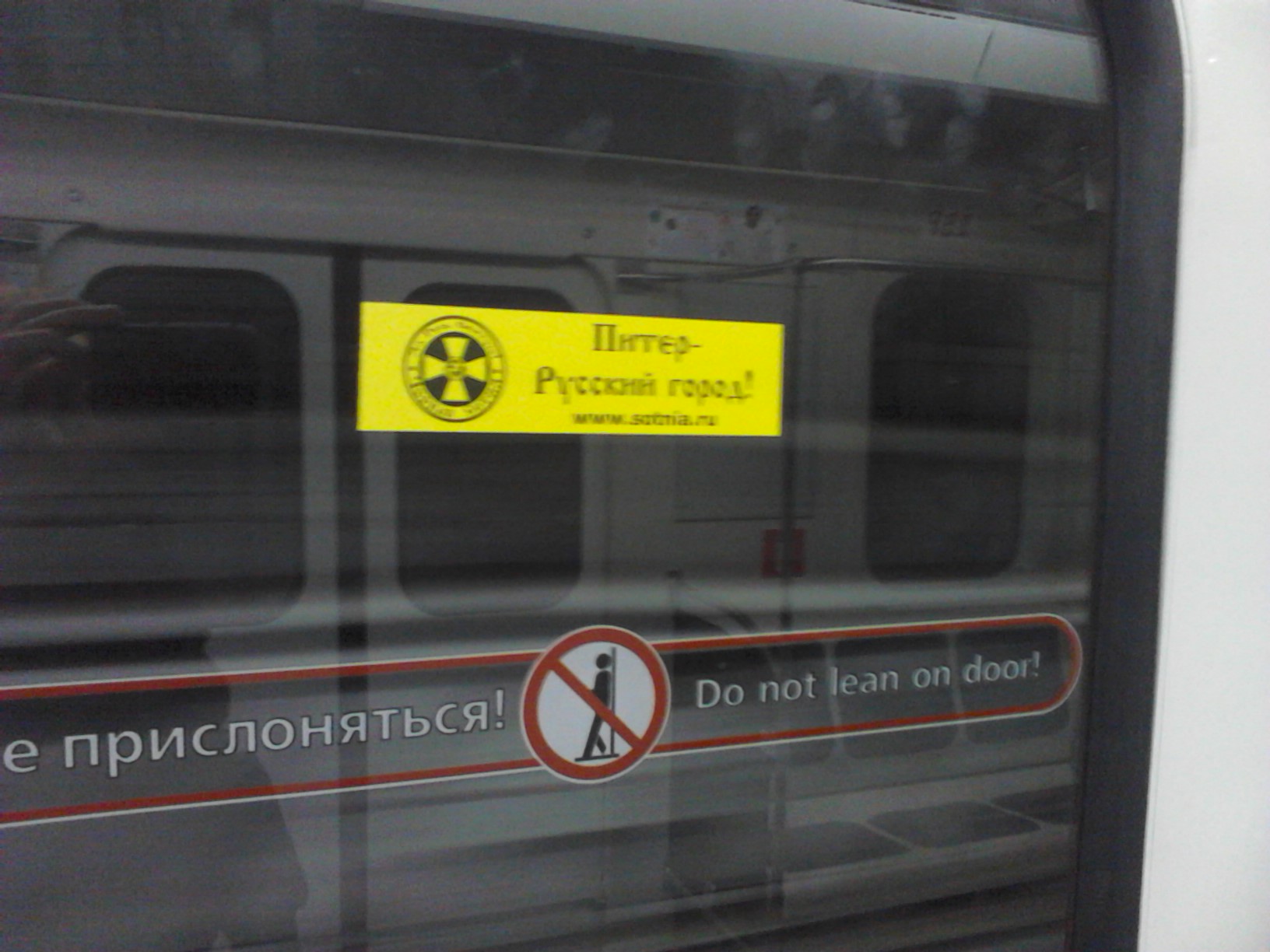 http://anton-raevsky.livejournal.com/24054.html-Черносотенные наклейки "Питер-Русский город!" (осень 2013).Ссылка