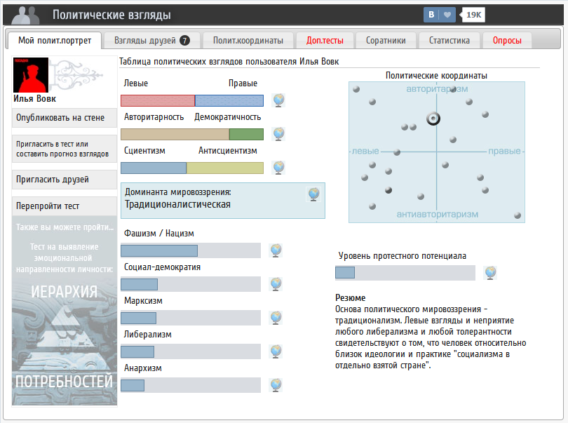С названиями идеологий там действительно лажа. Лучше смотреть на сами шкалы и на процент более радикальных участников теста.
