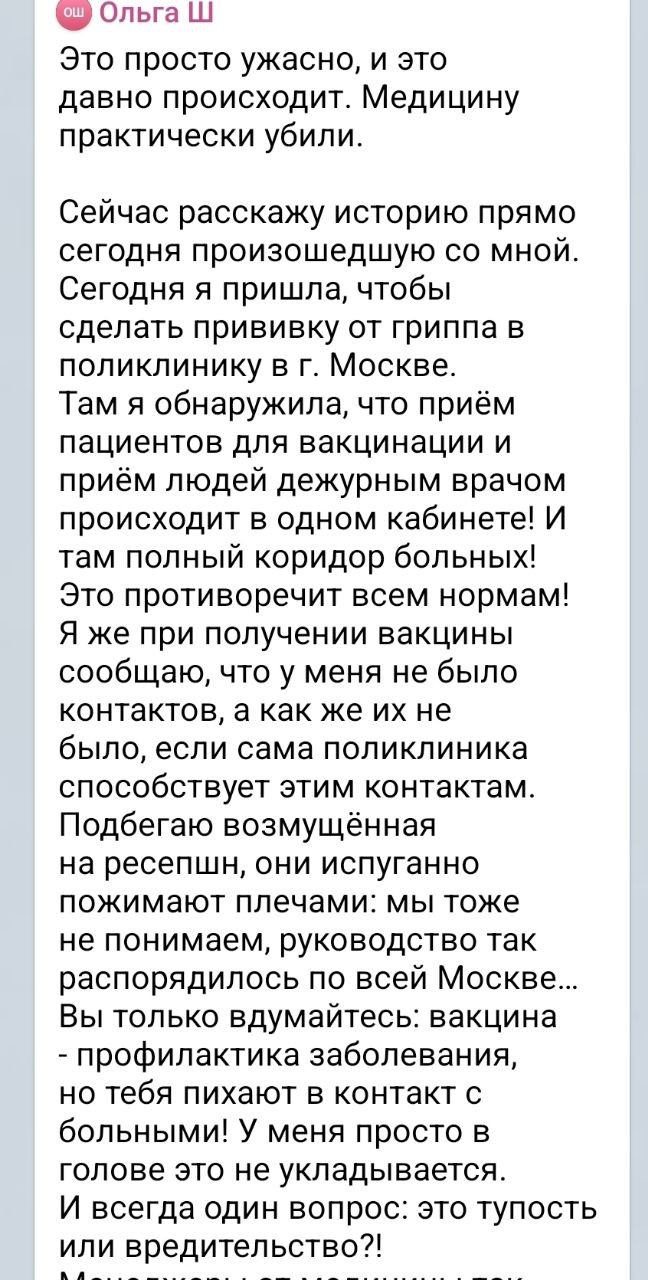 Даже желающие вакцинироваться от гриппа возмущаются: «это тупость или вредительство?»