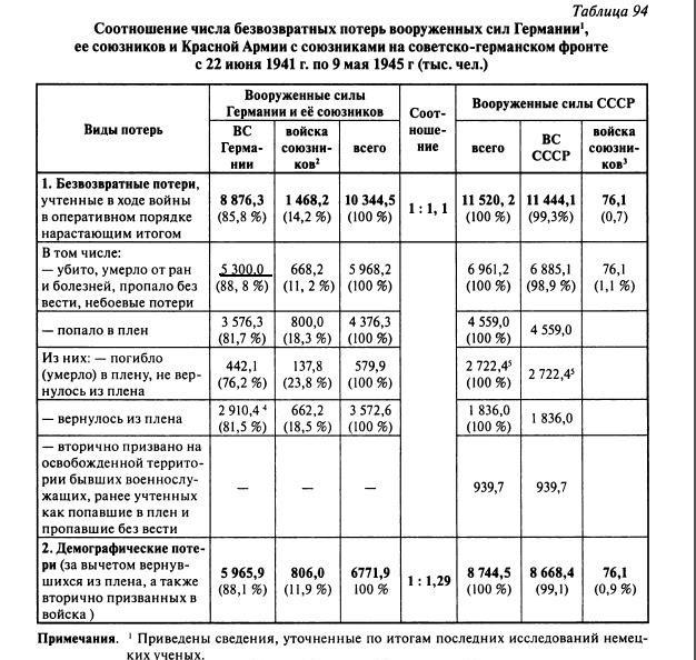 (См.: Г.Ф. Кривошеев, В.М. Андроников, П.Д. Буриков, В.В. Гуркин. Великая Отечественная без грифа секретности. Книга потерь. Москва, издательство "Вече", 2010, стр.372). Книга есть в сети, все желающие могут ознакомиться.