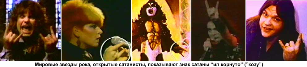 Оззи Озборн из группы “Блэк Саббат” признаётся, что он всегда сочинял музыку, находясь в состоянии медиумического транса. Эта группа изучала все разветвления оккультизма и сатанизма, начиная с “чёрной мессы” и кончая человеческими жертвоприношениями. В их альбомах представлены многочисленные оккультные и сатанинские символы, например, число 666, относящееся к антихристу.