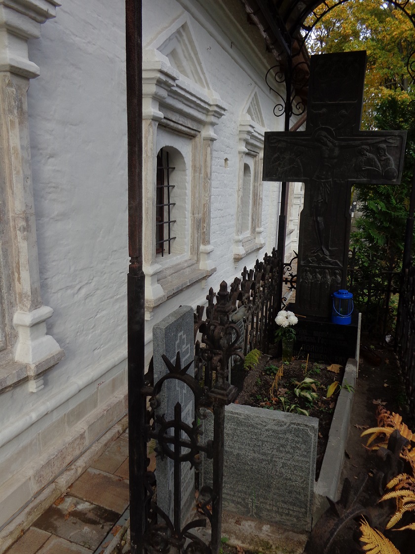 На этих фото запечатлена мраморная доска на стене Малого Донского Собора, в метре от которой расположен бронзовый крест и две гранитные надгробные плиты над могилой Новомученика Якова Полозова - келейника Патриарха Тихона: