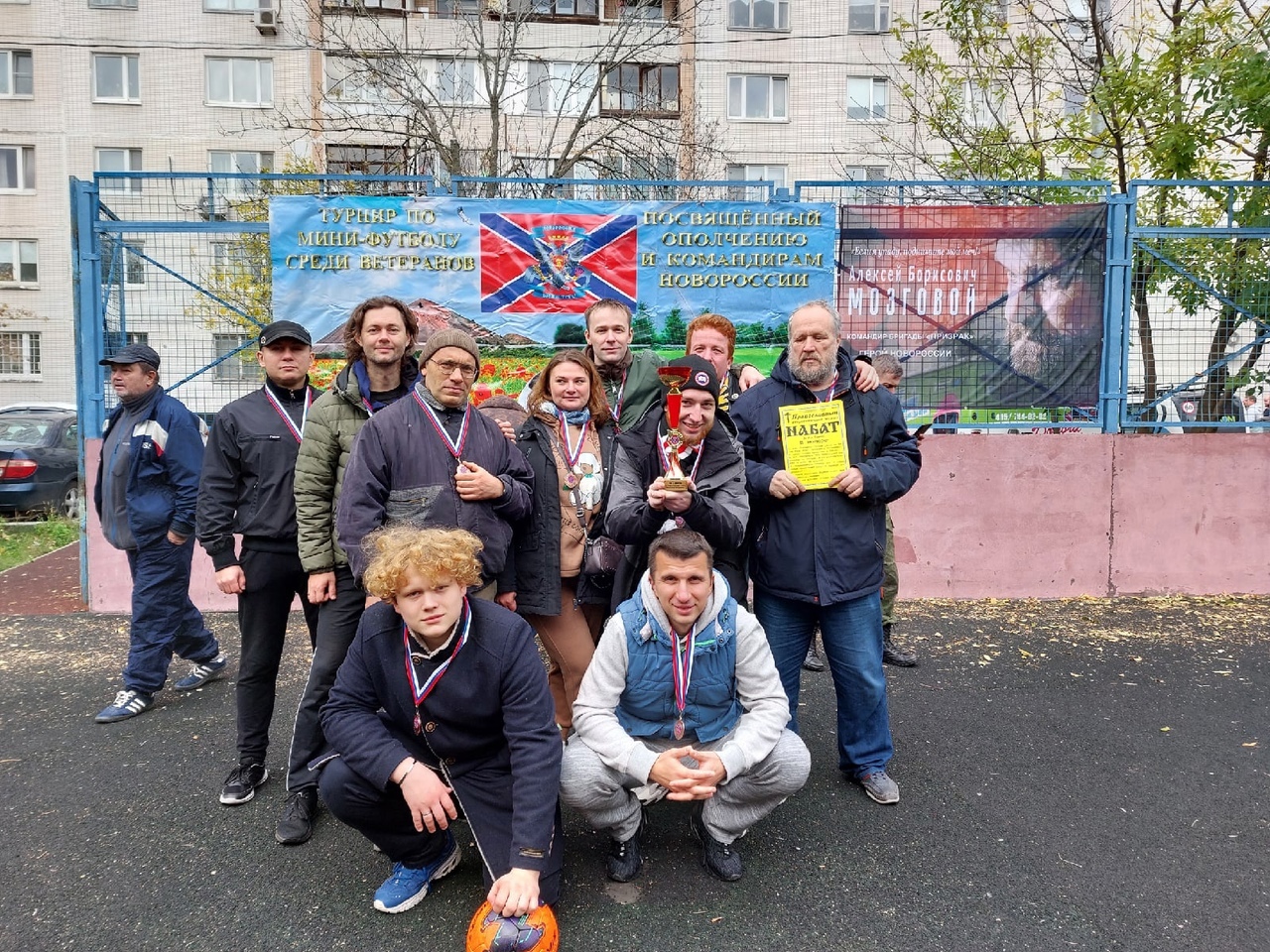 Только что закончился турнир по мини-футболу, посящённый Ополчению и командирам Новороссии. Команда "Черная Сотня", будучи несыгранной, проиграла первый матч со счетом 0:3, но в остальных матчах, благодаря прекрасным действиям защиты, средней линии и, особенно вратаря, а также благодаря голам, забитым нападающими, сумела перестроить игру и в итоге заняла Третье место, что для нас является (учитывая несыгранность) большим успехом!