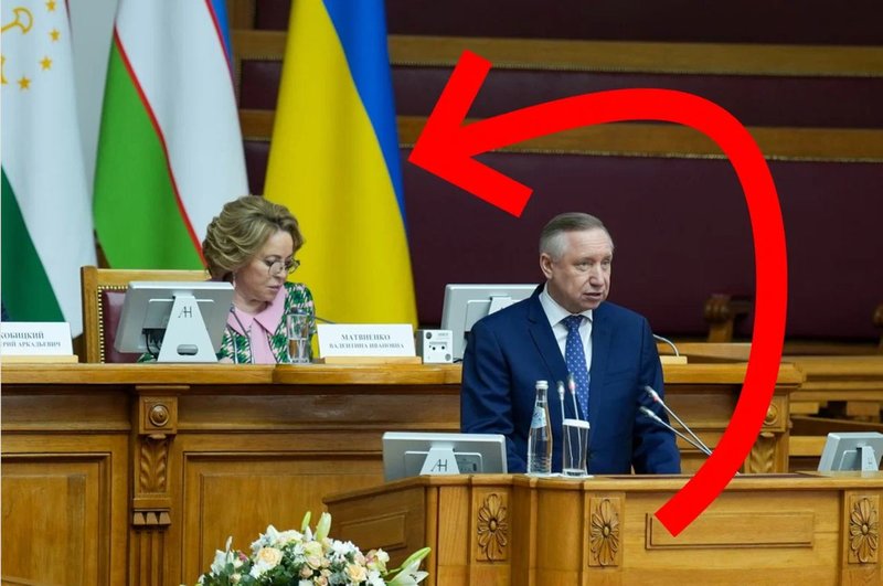 По поводу украинского флага на Межпарламентской ассамблее стран СНГ у Таврического дворца и в зале, где на его фоне выступали Беглов и Матвиенко.