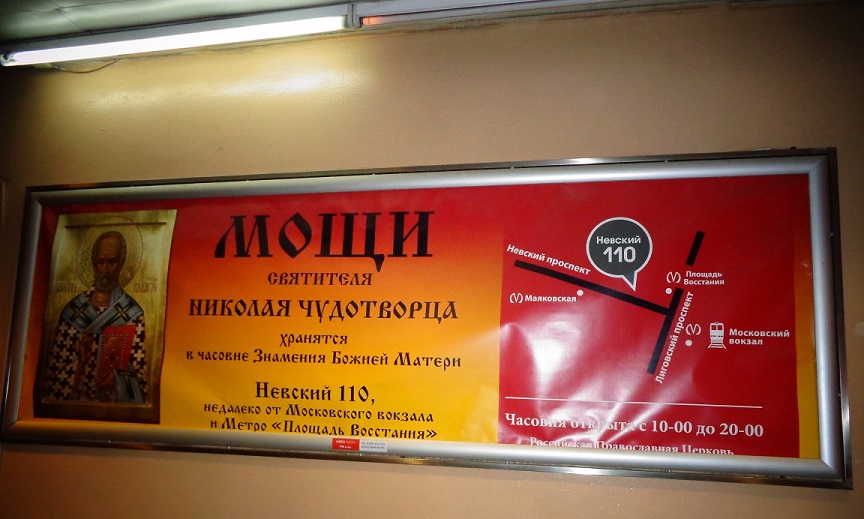 1. На протяжении 5 лет на центральных улицах Санкт-Петербурга ими массово размещаются запрещенные рекламные конструкции (раскладные щиты, так называемые «Стритлайны»), сообщающие о якобы прибытии в город мощей св. Николая Чудотворца и приглашающие поклониться им в одной из 6 «часовен», находящихся во дворах жилых домов в центре города и принадлежащих злоумышленникам. Пришедшим предлагается заплатить по 3 000 рублей «за сорокоуст».
