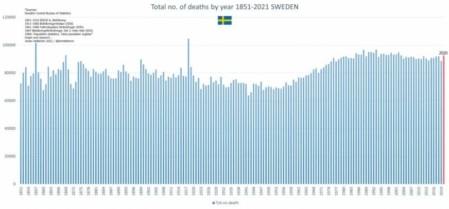 Информация для заядлых масочников: смертность за 2020 год в Швеции, где маски не носят. Оказывается, ничего особенного не произошло!