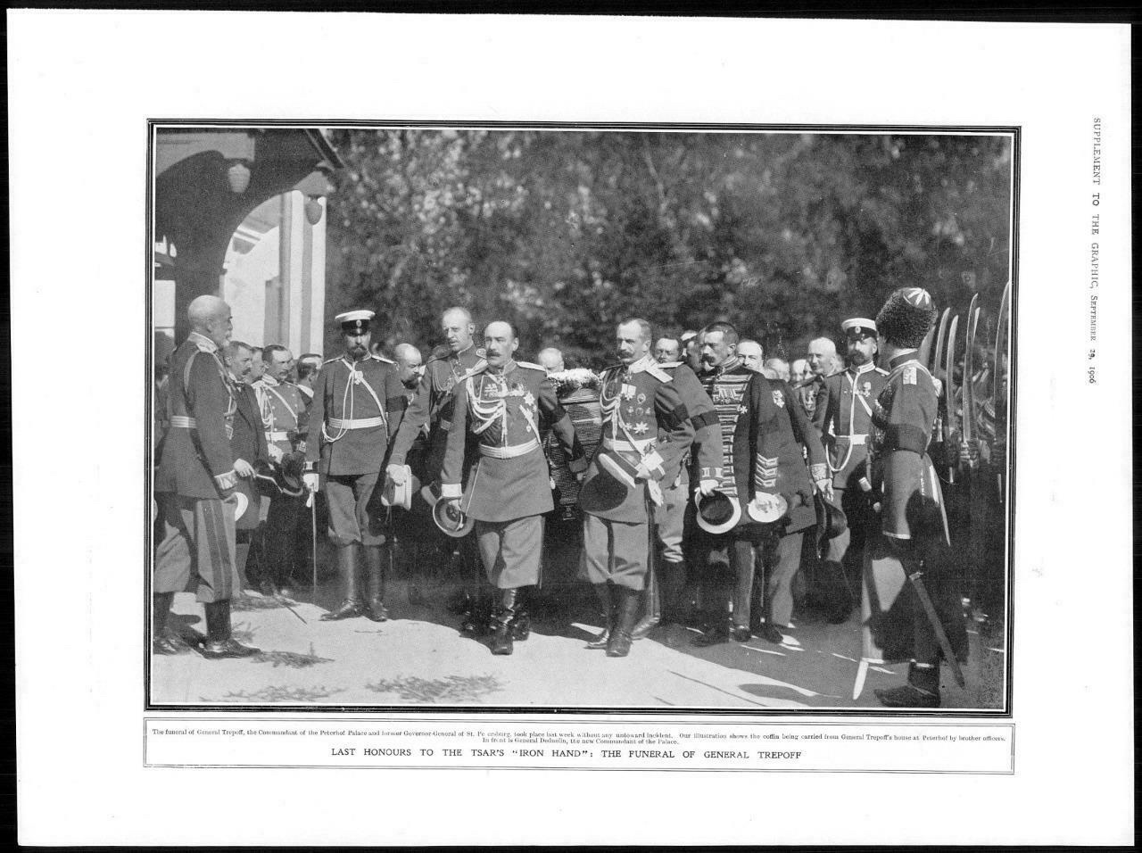 Жизнь, как известно, заканчивается смертью. Хочу, чтобы мои похороны выглядели так. Это похороны Дмитрия Федоровича Трепова, одного из лучших русских людей начала XX века. В ночь с 15 на 16 октября 1905 года Трепов, приняв экстренного курьера от Николая II (ему аж миноноску выделили), подтвердил, что: