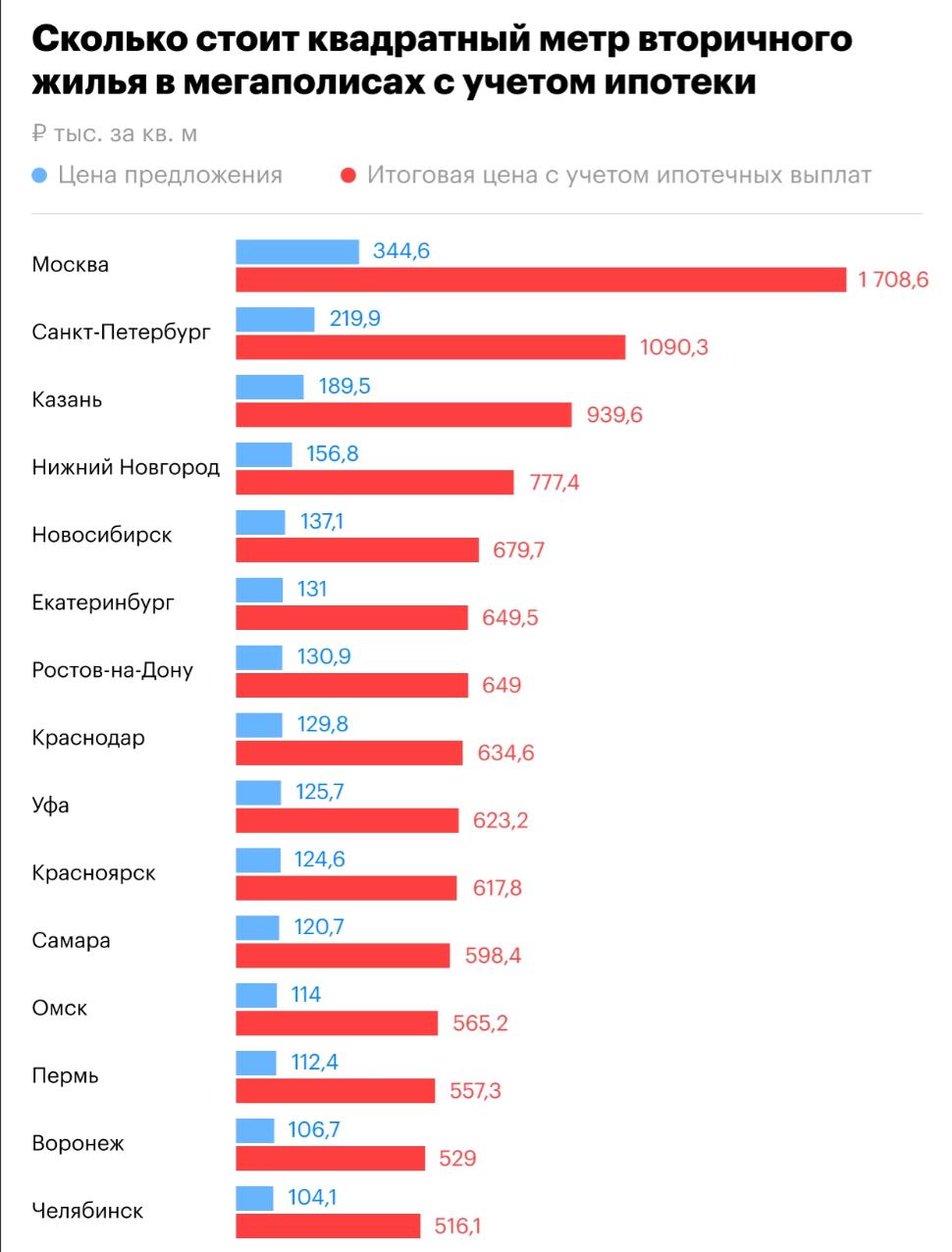 Даже в Челябинске или Воронеже - полмиллиона за метр, если брать ипотеку.