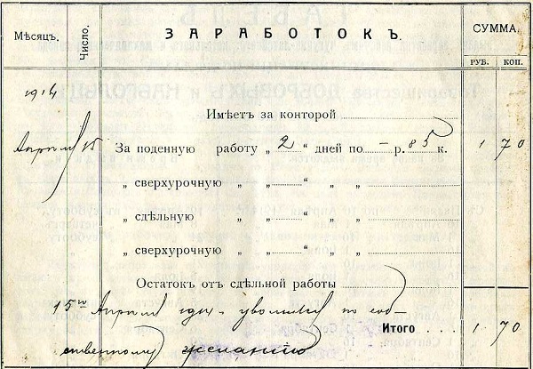 Слесарь — 1 день — 2,63 р.