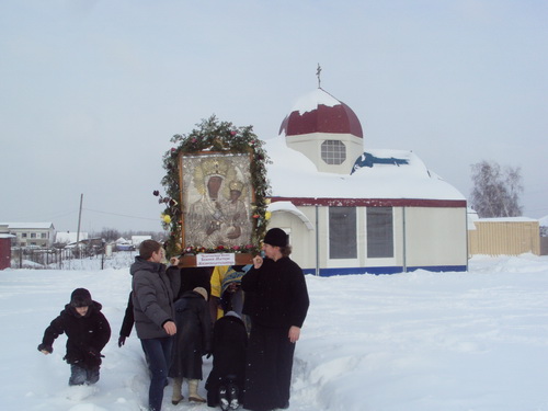 В субботу, 22 декабря, Икона была перевезена в башкировский храм святых Царственных мучеников. Сразу же был отслужен водосвятный молебен с акафистом, после чего началось Всенощное бдение в зимнем храме - вагончике.