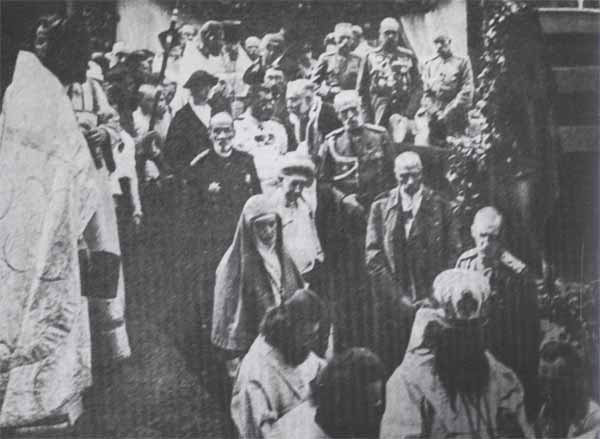 Братское кладбище - 1915 год: на переднем плане священники, за ними слева - великая княгиня Елизавета Федоровна, справа - великий князь Иоанн Константинович.