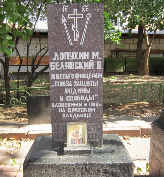 Казаки, юнкера, солдаты, офицеры, генералы, ополченцы-добровольцы, павшие в войне 1914-19 годов. Вечная Слава! Героям Брусиловцам и Георгиевским кавалерам", воздвигнутый в июне 1993 года на территории Всероссийского военного Братского кладбища - перенесен к Храму Всех Святых на Соколе в 1998 году.
