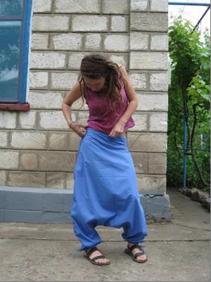 Какая изощренная пропаганда могла заставить молодую дурёху напялить на себя такое? Что это вообще? Штаны-мотня? Юбка со штанинами? Смирительная рубашка, натянутая на ноги? Почему мы так легко уродуем свой облик в угоду хохмочам, именуемым «кутюрье»? Почему иностранный портняжка так легко превращает нас в клоунов и дураков всего лишь двумя словами: «это модно»?