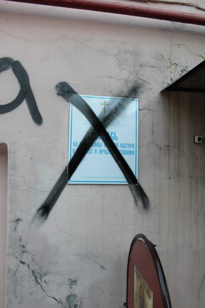 К сожалению,антисектантские надписи были оперативно стерты и закрашены.На фотографиях видны следы.