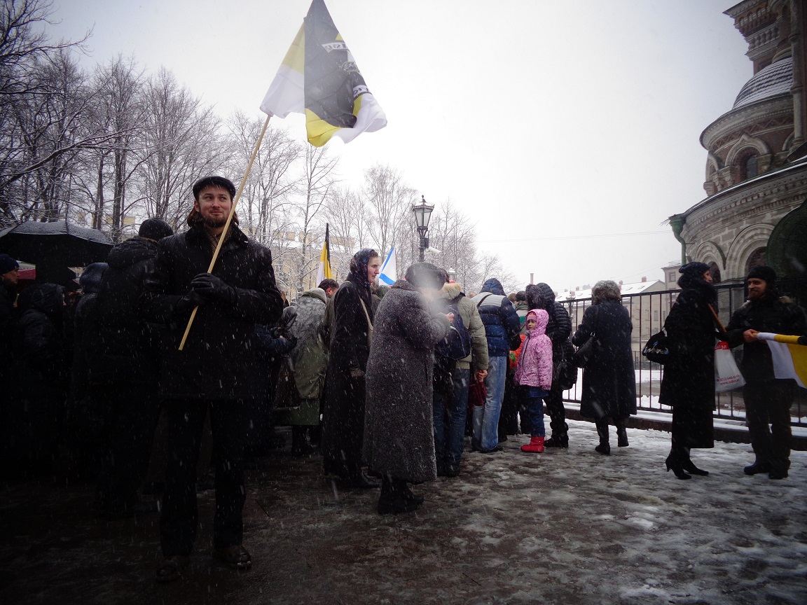 15 марта 2014 года по благословению митрополита Санкт-Петербургского и Ладожского Владимира состоялось традиционное молитвенное стояние у Спаса-на-Крови,приуроченное ко дню празднования Державной иконы Божьей Матери.В молебне приняли участие соратники Русского Имперского Движения,соратники политической партии "Великая Россия",соратники "Черной Сотни" и другие патриоты.Молебен собрал несколько сотен человек.Русские люди сугубо молились о России, а также о Крыме и Православных христианах Малороссии. После окончания молитвы люди с интересом разбирали журналы "Православный Набат".