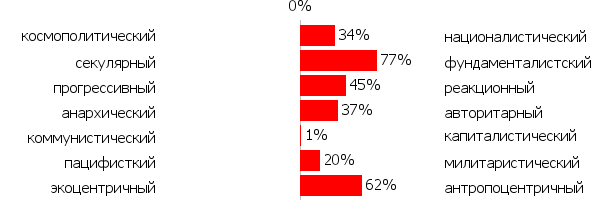 С названиями идеологий там действительно лажа. Лучше смотреть на сами шкалы и на процент более радикальных участников теста.