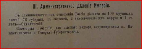 1. Ну, не стоит так... Справочник это, все-таки, документ. Итак, административное деление России - 78 губерний, 19 областей и ни слова о "княжествах". "Царство Польское", например, это просто историческое название губерний Привислянского края. Россия на губернии делилась, а не на "царства".
