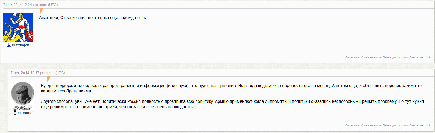 Александр ПРОХАНОВ. Вам трудно взаимодействовать с подобным вам лидером? Или вы делите участки фронта и у каждого своя роль? Александр ХОДАКОВСКИЙ. Есть сложности. Участками фронта жизнь не ограничивается. Есть вопросы экономики, снабжения, существования в целом, потому что мы находимся на самообеспечении. И нужно использовать те ресурсы экономические, которые остались в Донецкой области, чтобы переплавлять их, скажем так, на боевую готовность подразделения. Если в результате военных действий экономика уже подзатухла, то понятно, что ресурсов осталось немного. Если хватает мудрости и разума, то сложности преодолеваются. Если люди в меньшей степени идейно мотивированы, а включились в процессы из каких-то других побуждений, то возникают принципиальные разногласия. И они никогда не будут исчерпаны окончательно. Разве что приостановлены на время ведения боевых действий, потому что в этот период нужна максимальная консолидация сил. Некоторые лидеры являются абсолютными нашими антиподами. Я, например, всю жизнь служил в правоохранительной системе: антитеррористическая борьба. А есть люди асоциальные, из тех, с которыми я всю свою сознательную жизнь боролся. Сейчас мы оказались на одной стороне баррикад. И для меня, безусловно, превалирующим является то, что они в данный момент — мои братья по оружию. У каждого человека есть шанс что-то исправить. Человек в 90-е годы зарекомендовал себя определённым образом, например. Оказавшись в нынешней ситуации, он может стать другим. Но если этого не происходит, если люди даже в этой сложной ситуации пытаются реализовать другие задачи, нужно смотреть, насколько они вредят в целом военному положению. Если это существенно, мы принимаем меры. Немало случайных людей мы сами локализовали. Это наш долг. На сегодня — первейшая задача. Это важнее, чем борьба с украинскими вооружёнными силами — чистка собственных рядов. Пока передышка, мы бросаем все силы, чтобы выявить людей, которые являются деструктивными элементами. Потому что они, во-первых, формируют определённую репутацию. В Интернет выбрасывается из ополченческих подразделений ролики, где демонстрируются неприглядные факты. Мы должны такие явления искоренить. Не скрываем, что это есть, признаём, не идеализируем. А что касается личностных отношений, то кого-то из лидеров, местных, например, мы знали, а кого-то, как Стрелкова, не знали. И взаимоотношения с ними выстраивались не всегда просто. Но мы всё равно включали разум и не позволяли личным моментам выходить за пределы, чтобы не подорвать не очень серьёзные способности нашего воинства. Все прекрасно понимают, что есть законы, по которым нужно жить и действовать. Закон бить противника — раз. Второе — не подводить товарища, даже если это подразделение тех, кто тебе не сильно симпатичен. В этой ситуации свои доминирующие правила. Все жили по этим правилам. Александр ПРОХАНОВ. Александр Сергеевич, расскажите об операциях, в которых вы участвовали, чтобы можно было понять характер войны, которую вы ведёте. Александр ХОДАКОВСКИЙ. На этих операциях как раз строилась эволюция ополченческого движения. Есть пара операций, которые мне до сих пор ставят в вину, говорят, что было проявлено отсутствие компетенции военной. А я же спецназовец, знаю, как штурмовать здания. Но у меня не было опыта ведения обще