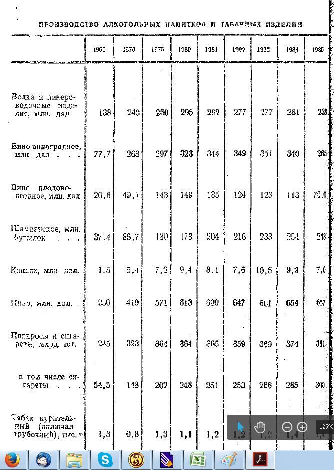 Вот ещё одни данные из статистического сборника "Народное хозяйство в 1985 году". Как видно, пик производства водки пришёлся на 1980 год, затем оно снизилось. При этом закупки зерна за рубежом увеличивались (см. график выше). Явная несостыковка. То есть Ваш ну очень информированный собеседник или просто подшутил, или говорил откровенную ерунду.