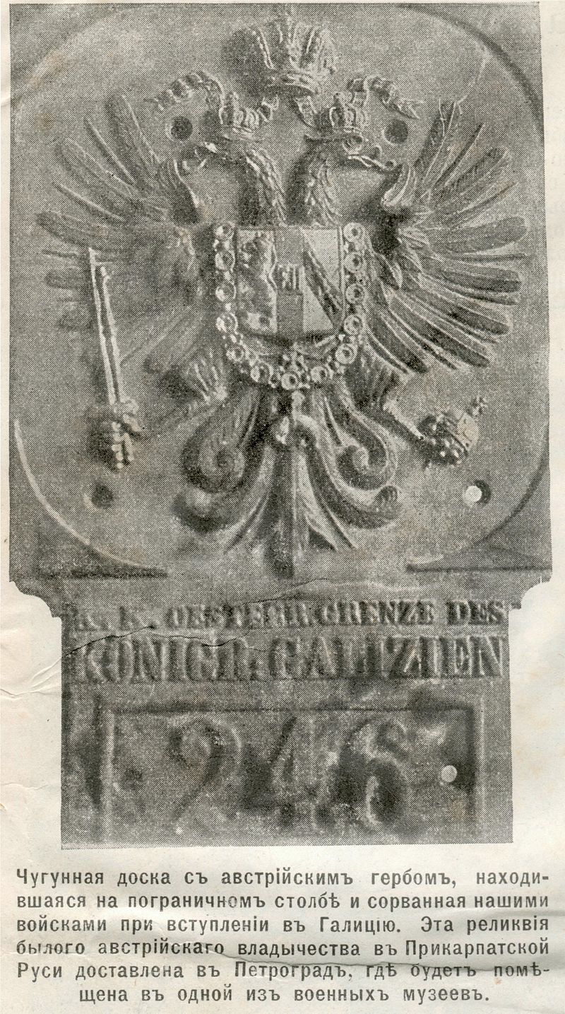 Трофей Русской Армiи-австрiйскiй пограничный гербъ "Галицiя".
