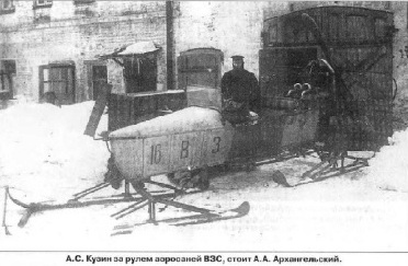организации) - начал строительство автозавода в Москве недалеко от улицы Стромынка. Строили сани по системе А.С. Кузина. Первый экземпляр, который мог развивать скорость до 80 километров в час, был получен в декабре того же года. Аэросани выпускались двумя сериями по пять и семь машин, всего планировалось произвести 25 аэросаней. Сани ВЗС изготавливались трёх-четырёх- и пятиместном исполнении и могли выполнять связные и санитарные функции.